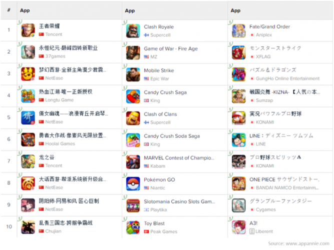 За основу приняли Топ-500 зарабатывающих игр и сравнили его в 40 ведущих рынках. Вот, например, цифры для десяти: