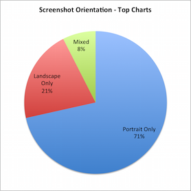 Интересно, что у зафичеренных приложений скриншоты с альбомной ориентацией встречаются чаще, чем у приложений в топ чартах.