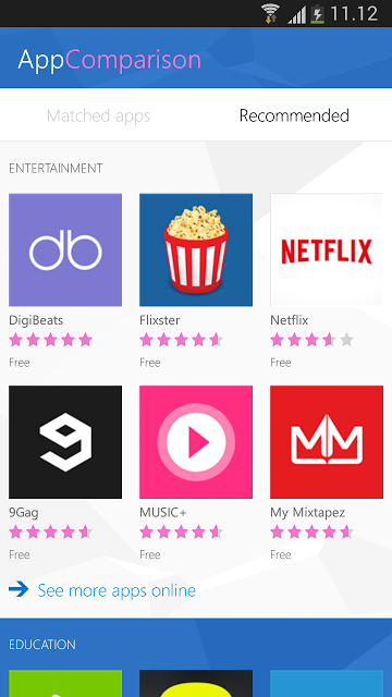 Заметьте, что многие приложения доступны на обеих платформах, например WhatsApp, Messenger, Facebook, Truecaller, Twitter и Speedtest.net есть и в Windows Store. В AddComparison вы также увидите раздел «Рекоммендации», который включает в себя список популярных приложений, которые могут вас заинтересовать. Среди них Flixster, Netflix, 9Gag, Adobe Reader и многие другие.