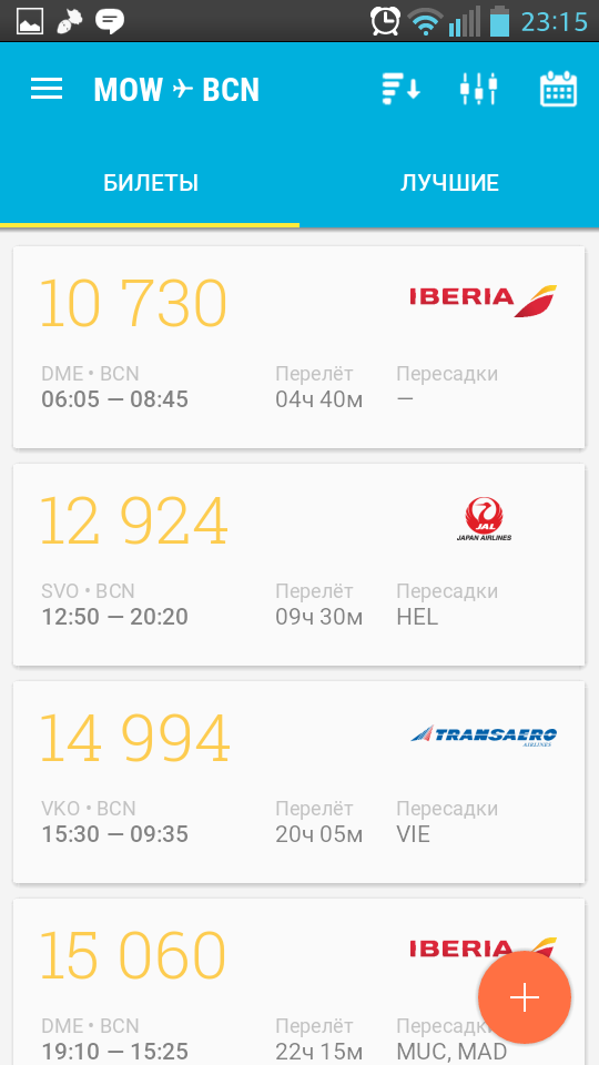 Мы перенесли ряд фич из iOS-версии. Например, теперь в Android появилась вкладка с рекомендованными рейсами — лучшие, быстрые и дешевые авиабилеты. Все варианты подобраны с учетом строгих критериев, чтобы пользователю не нужно было просматривать тысячу комбинаций. Это нельзя назвать чем-то сверхъестественным. Но мы верим в то, что вкладка добавит удобств.