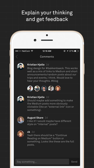 Платформа для дизайнеров и рабочих команд, позволяющая обсуждать ведущиеся работы. На смартфоне или компьютере (есть специальная программа для Mac для публикации) вы можете делать скриншоты и фотографии, а затем обсуждать их в своем пространстве с коллегами.