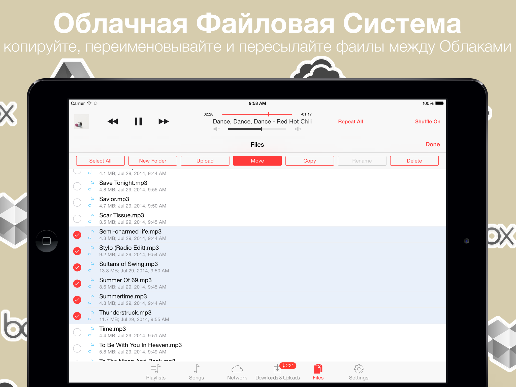 Eddy — это приложение, которое позволяет значительно экономить место на своем iPhone или iPad, а так же в разы облегчает загрузку музыки на девайс. Eddy — это музыкальный плеер, который позволяет прослушивать музыку напрямую из облаков (Dropbox, Box, Google Drive), загружать её на устройство для offline прослушивания, а так же файл-менеджер для перемещения музыки между облачными хранилищам.