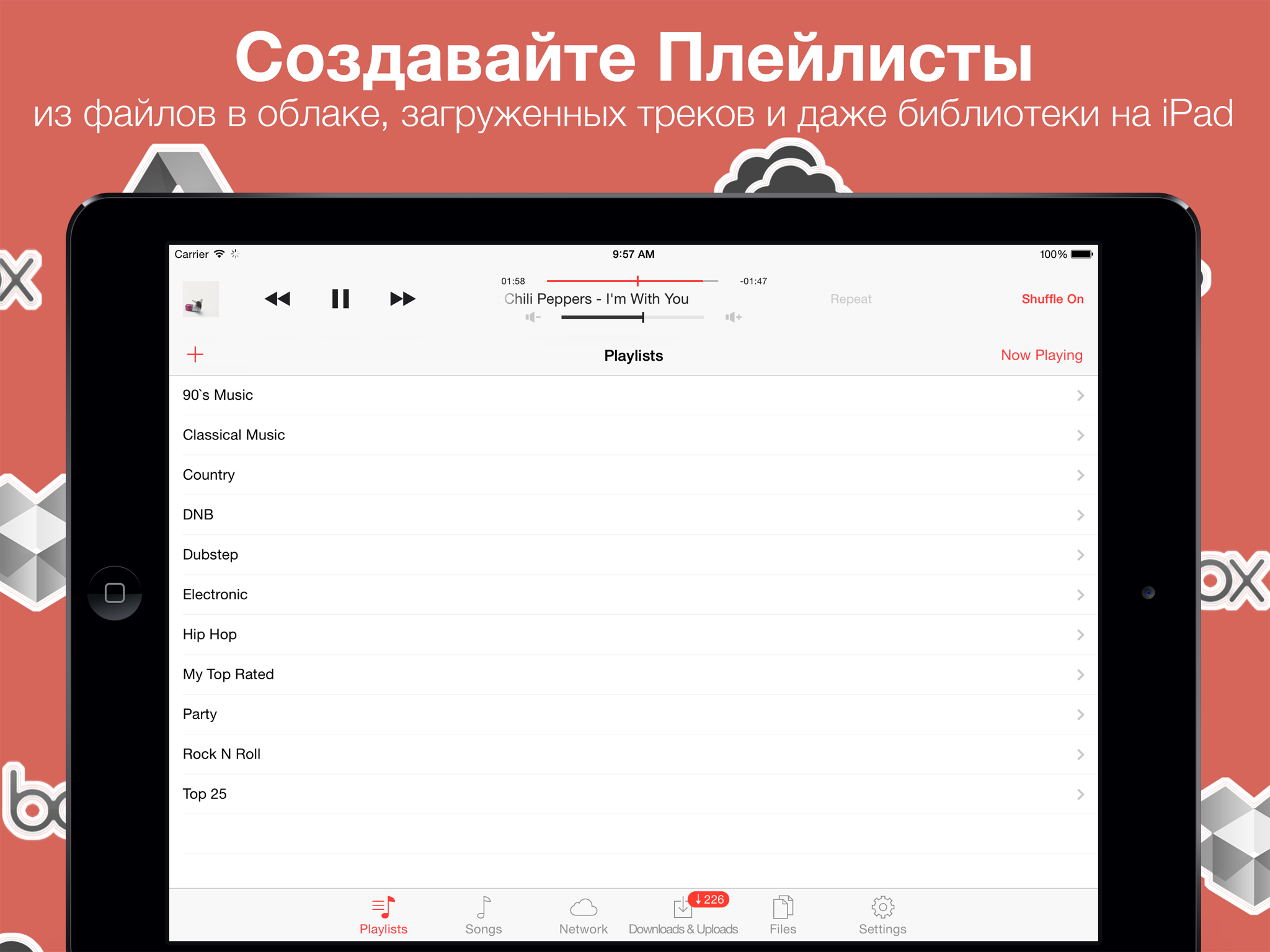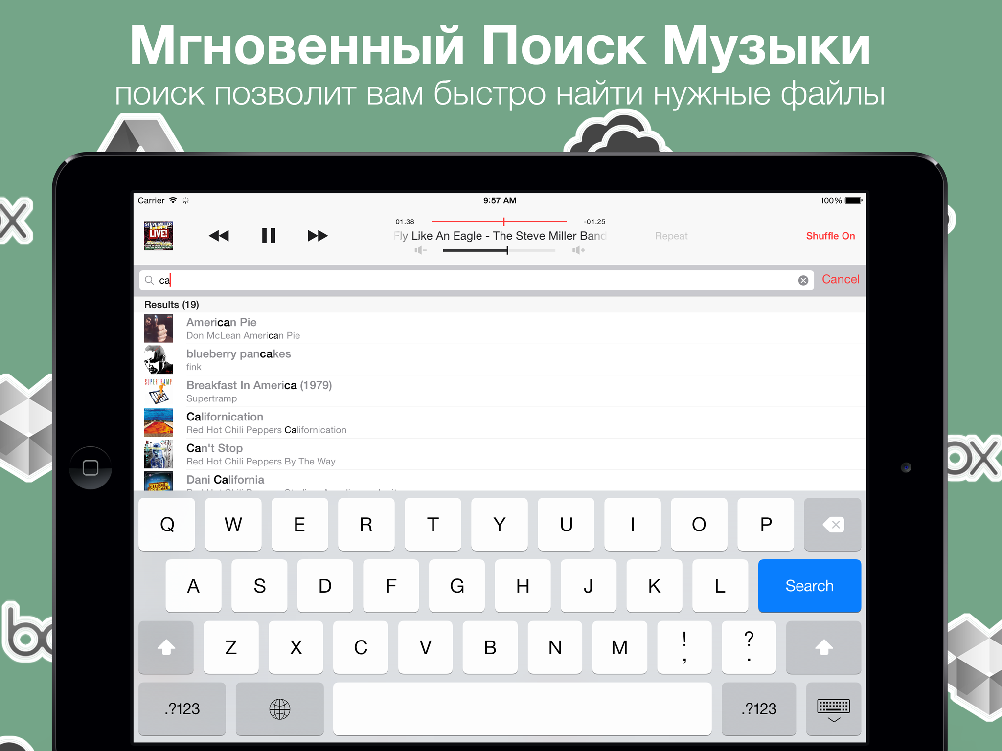 Почти всем нашим меломанам вечно не хватает той музыки, которая не помещается на девайсе из-за огромного количества других программ. Так появился Eddy — проигрыватель музыки из облачных сервисов Dropbox, Box и Google Drive, который поддерживает популярные форматы музыки, обладает полноценным проигрывателем, поддерживает Airplay, ищет музыку по названию и исполнителю и вообще очень крут. Причём, музыку можно как стримить из облака, так и загружать к себе на устройства и прослушивать её в оффлайне, так же можно добавить файлы из локальной библиотеки.