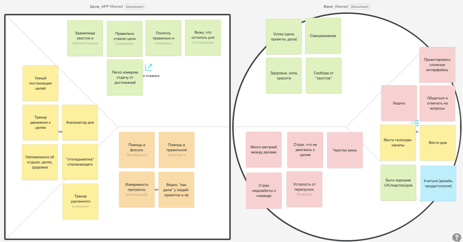 - но много метаний между делами (боль) — нужна помощь в фокусе. Заниматься долго одним делом, откладывая важное, но отвлекающее, на потом (реливер) — в этом поможет трекер движения к целям (кусок продукта).