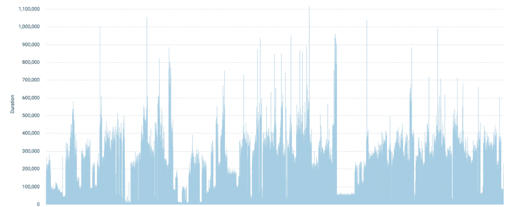 Но сначала давайте обновим статистику репозитория с прошлого раза. Год назад репозиторий Point of Sale приложения содержал около 3 миллионов строк кода, разбросанных по 3500 модулям Gradle. Многие десятки разработчиков, работающих над ним, ежедневно запускали около 2000 локальных сборок, что в сумме давало времени на 3 дня в день. Наша система непрерывной интеграции выполняла более 11,000 сборок в день, при этом совокупная стоимость сборки составляла более 48 дней в день. Сегодня тот же репозиторий содержит более 4 миллионов строк кода (+33%), распределенных по почти 4400 модулям Gradle (+25%). Разработчики запускают около 2200 сборок в день (+10%), а совокупная стоимость составляет около 3 дней в день (±0%). Наша система непрерывной интеграции теперь выполняет почти 12,000 сборок в день (+9%), или более 58 дней в день (+30%).