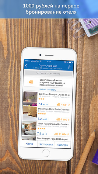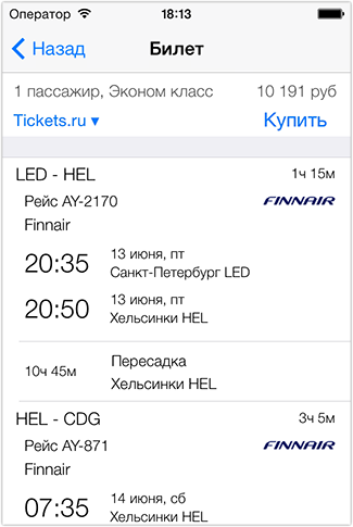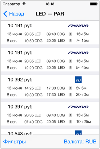 Лучший пример интеграции сторонними разработчиками — это, несомненно, приложение для Travel.ru. Ребята объединили свой поиск отелей с нашим поиском авиабилетов, и получилось крутое приложение для путешественников. Кроме того, разработчики из CleverPumpkin (они занимаются разработкой мобильных продуктов для Travel.ru) «допилили» наше шаблонное приложение до полноценной поддержки iPhone 6 и iPhone 6+, когда они только стали доступны.