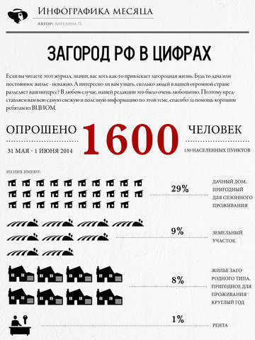 В этом и заключалась вся тема, мы и хотели сделать загородную жизнь более глянцевой, так ее и передать. Старались максимально сделать журнал для народа, но со стороны глянца. Есть разные издания — «Садовник», «Дачник» и подобные — которые пишут о том, как круто сажать огурцы. Это все очень полезно, но мы хотели показать это как отдельную часть культуры, потому что очень многие люди — я проводил такой опрос и делал некую аналитику, чтобы понять аудиторию и желание — сказали напрямую, что им такого издания не хватает. В основном это люди взрослые, 40-45 лет — это самая широкая аудитория, имеющая дачу или загородный дом. Им было бы интересно помимо советов читать такие материалы.