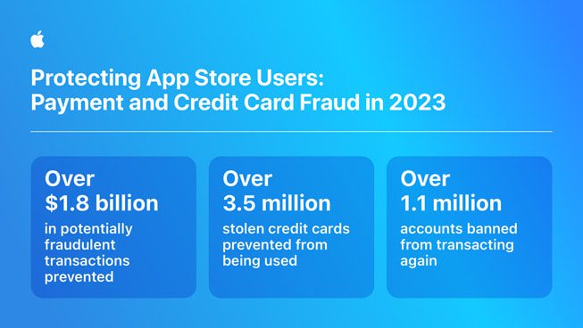 - Apple помогла предотвратить потерю более 1.8 миллиарда долларов от потенциально мошеннических операций на своей платформе.