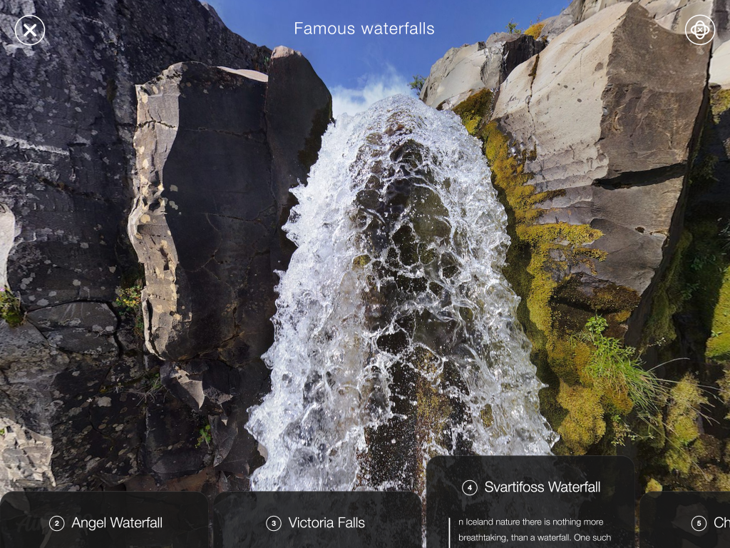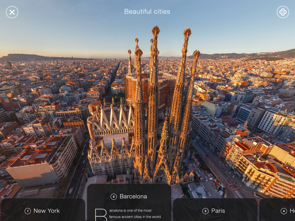 В нем под вашими пальцами – самые живописные и известные места нашей планеты – в невероятном разрешении и с обзором на 360 градусов. Тут чудеса света, чудеса природы, лучшие города, ночная жизнь, горы, озера и заливы, места, хранящие историю нашей цивилизации, самые известные водопады, лучшие пляжи. Всего около четырех десятков отличных фотографий.