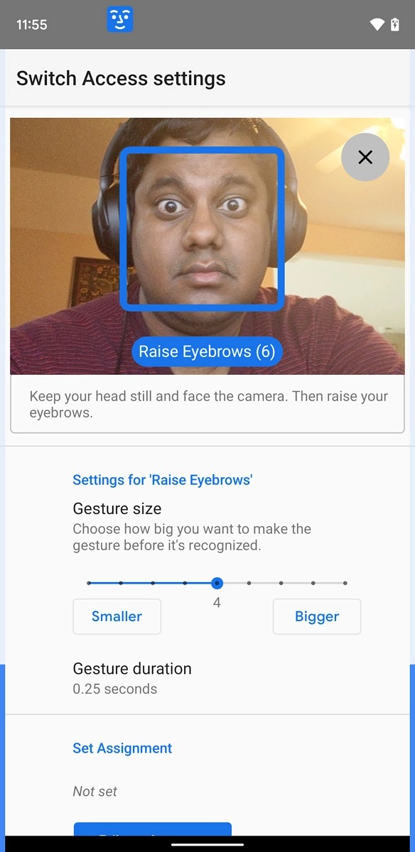 Таким образом, вы можете, например, настроить телефон, чтобы он открывал панель уведомлений при открытии рта. Или вы можете сделать так, чтобы поднятие бровей означало, что телефон должен вернуться на главный экран.