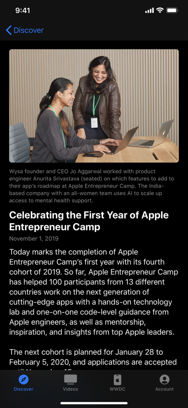 Основано оно на приложении WWDC и в нем последние новости, видео, материалы конференций и т.д. Пользователи из США прямо в приложении могут подключиться к Apple Developer Program с мобильных устройств.