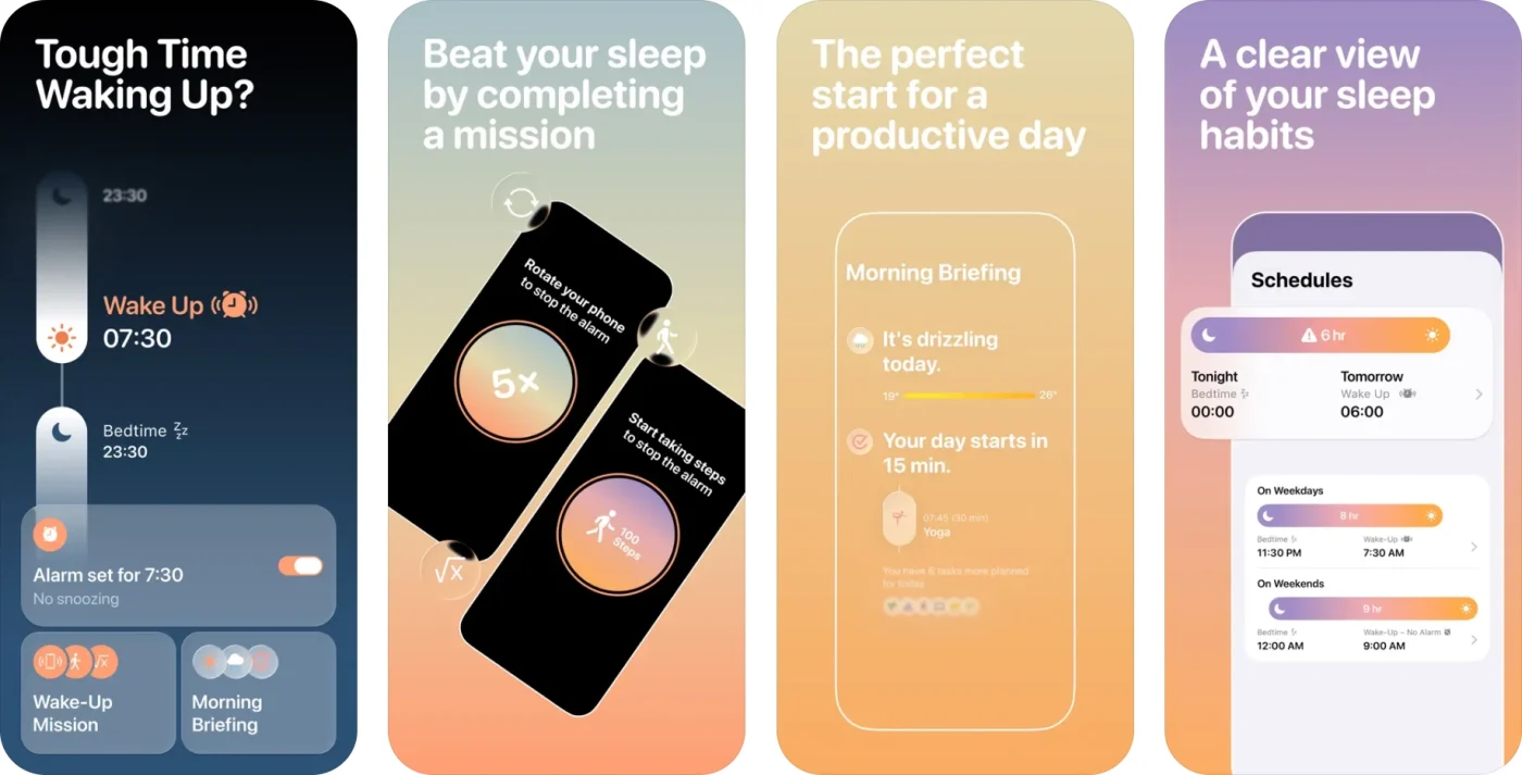 Хотя существуют и другие подобные приложения, такие как Alarmy, Challenges и Mathe Alarm, Awake выделяется дополнительными фичами. Одной из них является «Утренний брифинг», который предлагает пользователю персонализированную сводку информации, выбранной накануне вечером, включая прогноз погоды и события из календаря.