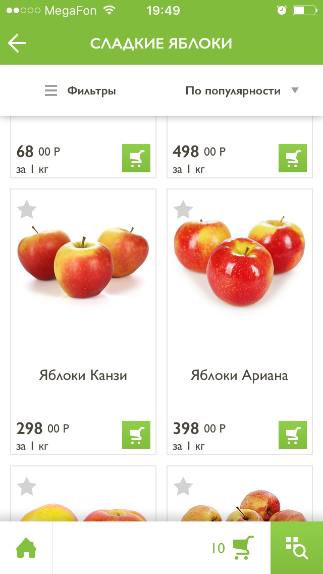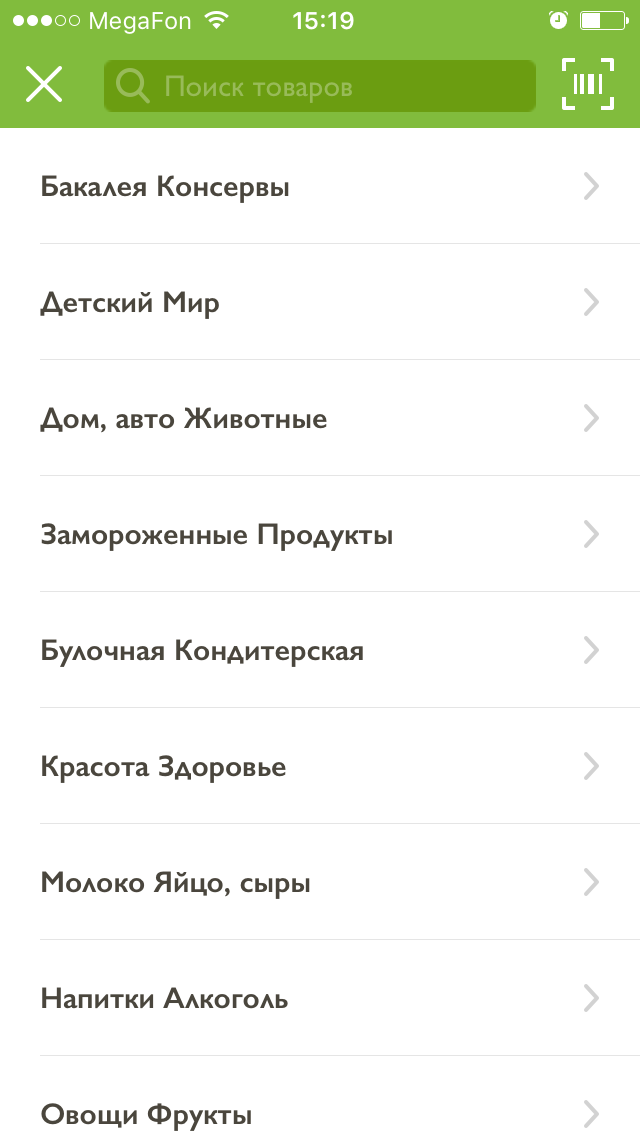 1. Поиск. Хотите именно сладкие яблоки без кислинки? Без проблем – вбейте «сладкие яблоки» в поиске и выбирайте. Хотите заказать аппетитное пирожное, как на столе у коллеги? Отсканируйте штрих-код упаковки и добавьте товар в корзину. И, конечно же, вас ждет удобная навигация по разделам товаров.