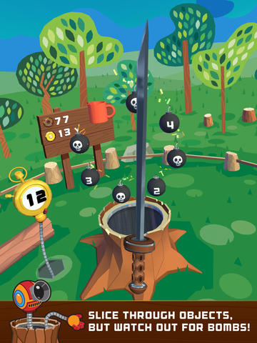 Bonsai Slice – уникальная в своем управлении игра от студии Playground Theory. Во многом ее геймплей напоминает Fruit Ninja, игроку надо резать появляющиеся на экране объекты избегая бомб. Весь цимес в управлении — вместо простых свайпов по экрану, вам надо взять iPad и физически использовать его как меч, махая им справа налево и сверху вниз.