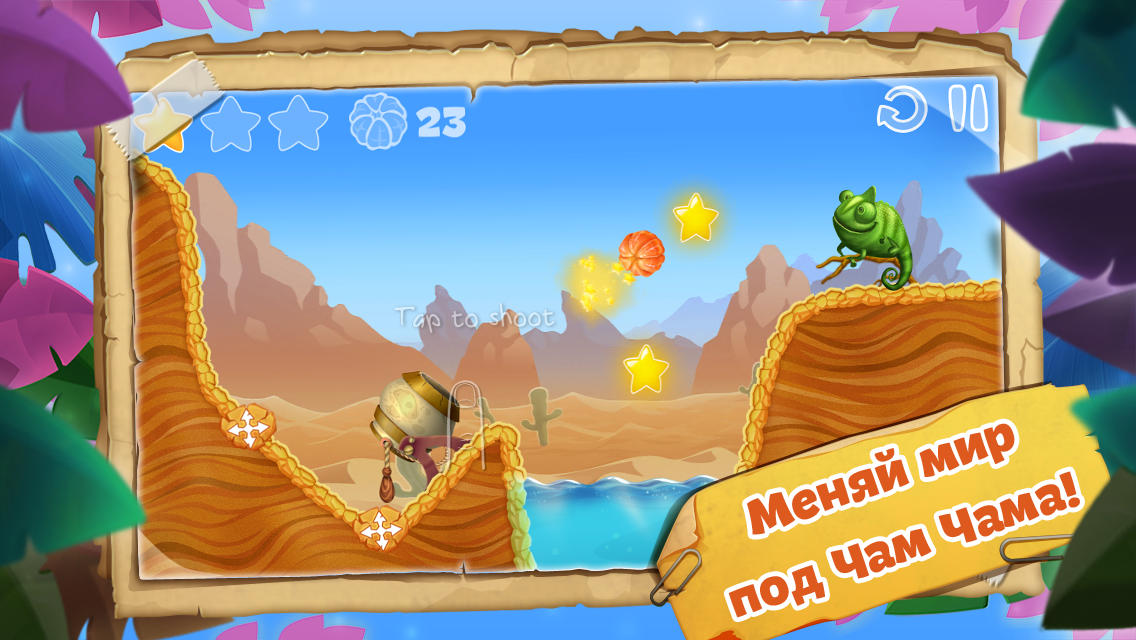 Милый хамелеон Чам Чам потерял то, что он любит больше всего – вкусный фруктик! Его последняя надежда — это вы. Используйте все средства, чтобы вернуть фруктик Чам Чаму, и он снова засмеется. Но будьте осторожны: на вашем пути будут попадаться острые камни, глубокие реки, грозы с молниями, ледяные пустыни и куча других опасностей. Помогут же в добыче вкусностей пушки, порталы, сила ветра, саму землю можно менять, чтобы порадовать хамелеона.