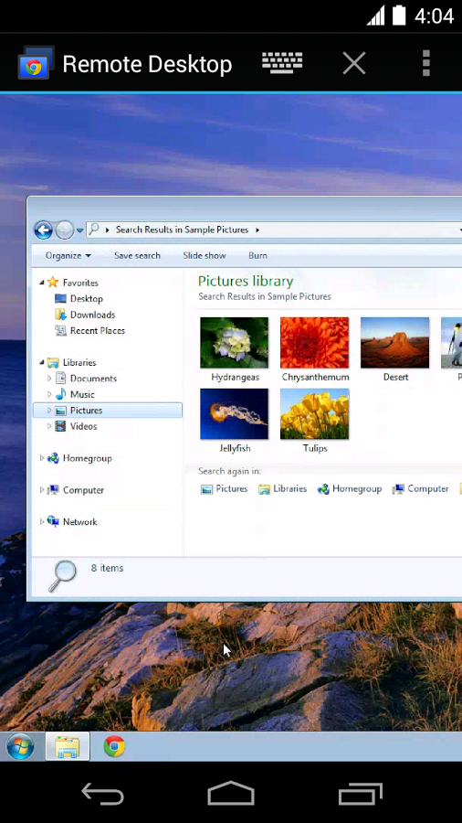 Скачать Chrome Remote Desktop для Android: https://play.google.com/store/apps/details?id=com.google.chromeremotedesktop
