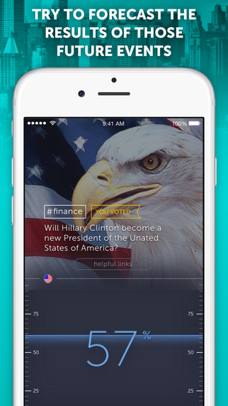 Неделю назад в открытый глобальный доступ в App Store вышло Crowd Forecasting приложение Cindicator. Приложение предлагает пользователям каждый день отвечать на различные вопросы из сферы финансов, политики или спорта, делая свои собственные прогнозы, и соревноваться друг с другом. Как только событие, о котором задавался вопрос завершается в реальности — подводятся итого и распределяются очки между пользователями.