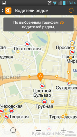 Возвращаясь к заказу, вы можете посмотреть, какие машины компании находятся рядом с вами – очень удобная функция. На карте вы может не только понять, как быстро к вам приедет машина, но и после формирования заказа следить за ее приближением, а если отправили кого-нибудь из близких – наблюдать за их поездкой.