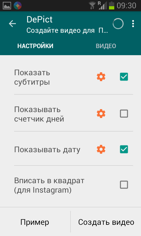 Как только у нас накопилось достаточное количество селфи, можем переходить к созданию видеоролика. Кто знает, может быть, именно ваше видео взорвет Интернет? Благо, разработчик на славу постарался, чтобы в распоряжении пользователя были все необходимые инструменты для творчества. Так, при создании видеофрагмента есть возможность установить отображение даты или счетчика дней для каждого снимка, оптимизировать свой «креатив» для размещения в Instagram, задать качество видео (доступна поддержка Full HD) и количество кадров в секунду. На выходе получаем видеоролик в формате MP4, которым при желании можно поделиться с друзьями в соцсетях прямо из окна программы.