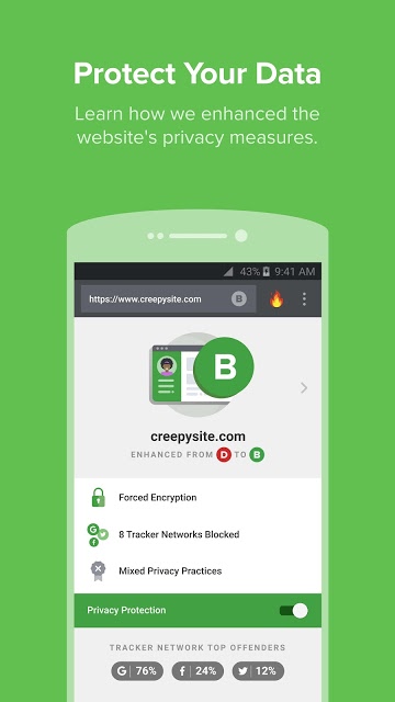 - защита конфиденциальности блокирует все обнаруженные скрытые трекеры, выявляя крупнейшие рекламные сети, уже давно следящие за вами, — вы можете отслеживать, кто пытается следить за вами;