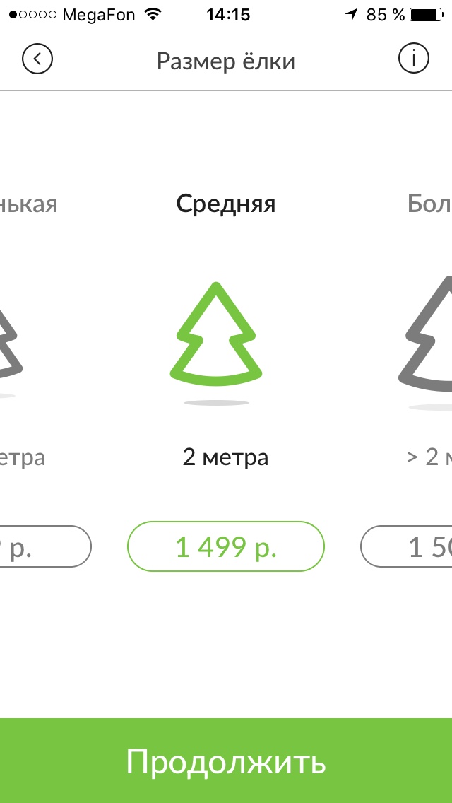 Запустили приложение. Начались первые заказы. И выяснилось, что с сокращением выбора мы явно перестарались. Да, идея пользователям понравилась, но оказалось, что просто выбрать среднюю ёлку мало. Люди хотят знать точный размер, средняя — это какая? От метра до полутора? Или как? И что вообще за ёлки приедут? Русские? Датские? Голубые? А подставка вообще будет? Или ель с корнями занесут в квартиру и уедут?