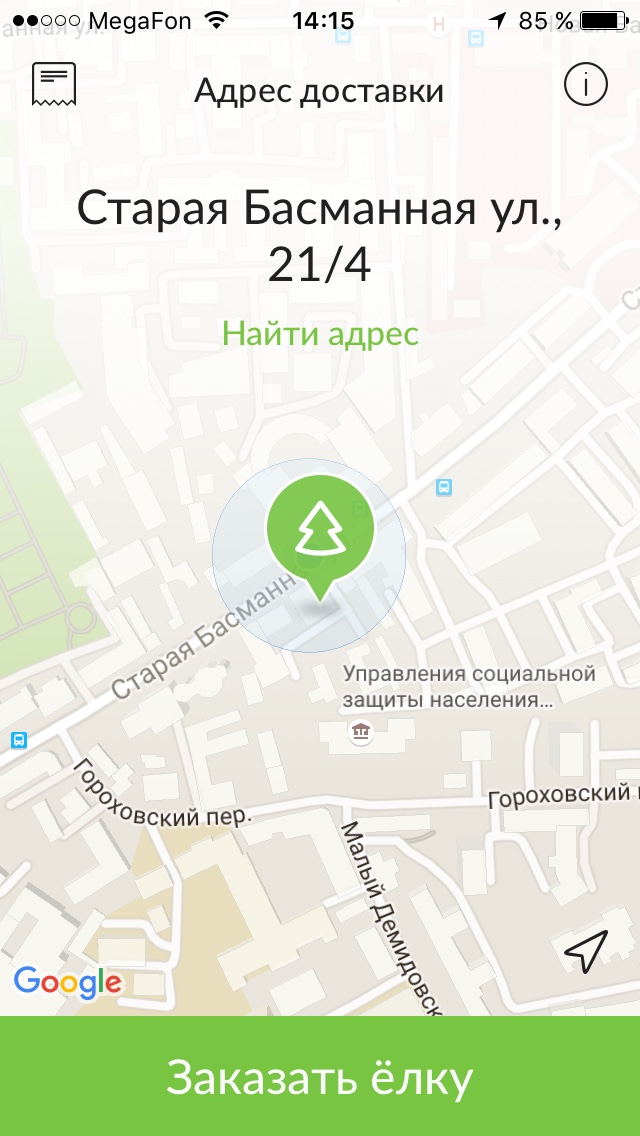 На стыке этих двух простых истин у меня родилась идея — приложение для заказа ёлок в один клик.