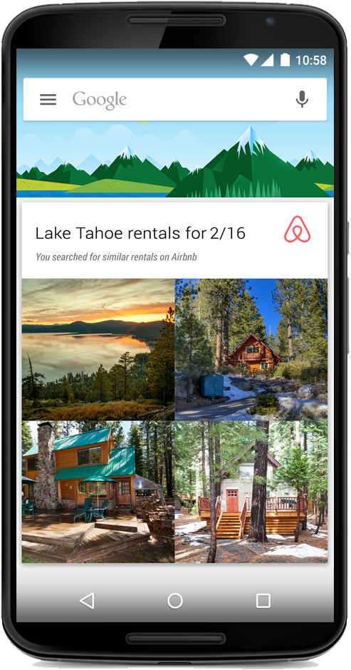 Google Now предоставляет персонализированные результаты поиска в виде «карточек» автоматически на основе предыдущих действий пользователя. Например, если по пути домой перекрыто движение, апп посылает карточку с предупреждением и предлагает новый маршрут. Сервис был запущен в 2012 году. Раньше карточки работали только с Google Maps, Gmail, поисковиком и т.п.