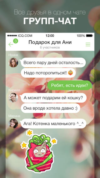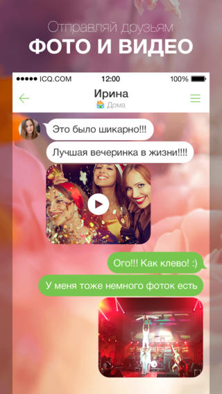 Кроме привычных фото и видео, в новой версии есть возможность отправлять файлы любых типов — например, DOC или PDF. Кстати, фото и видео можно снять, не выходя из ICQ. Также в дополнение к привычным смайликам появилось больше количество бесплатных красочных стикеров.