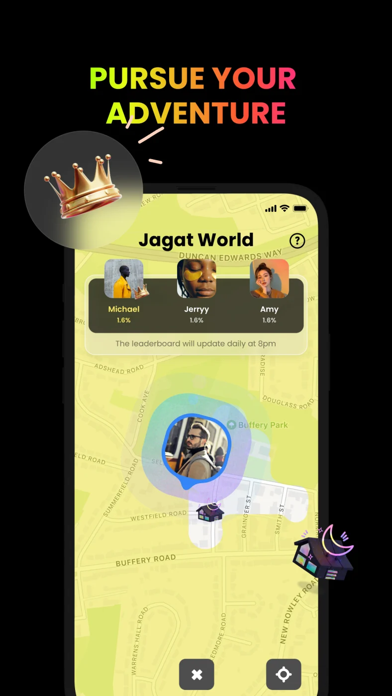 Социальная карта — это то, что вы видите, когда открываете Jagat, ведь именно на ней вы видите местоположение своих друзей в режиме реального времени. Здесь же вы записываете места, в которых побывали, и можете нажимать на аватары своих друзей, отправляя им сообщения, стикеры или обновления. Джагат считает, что карта — это основной интерфейс для поиска развлечений и людей вокруг вас. Вы можете видеть обновления статусов своих друзей в режиме реального времени, чтобы узнать, чем они занимаются.