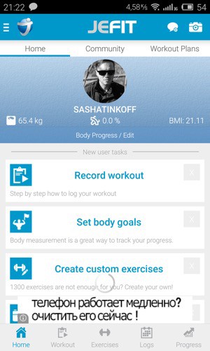 На самом деле, в моем случае, сыграла свою роль привычка — я познакомился с сервисом Jefit несколько лет назад, когда запутанный интерфейс был стандартом де факто, до появления Holo интерфейсов было несколько месяцев, а безраздельно правил бал в мире мобильных старый добрый iPhone. К тому же я время от времени менял платформу на телефоне — то Android, то iOS, а Jefit предоставляет мультиплатформенную поддержку, так что все мои данные оставались, так сказать, у меня в кармане.