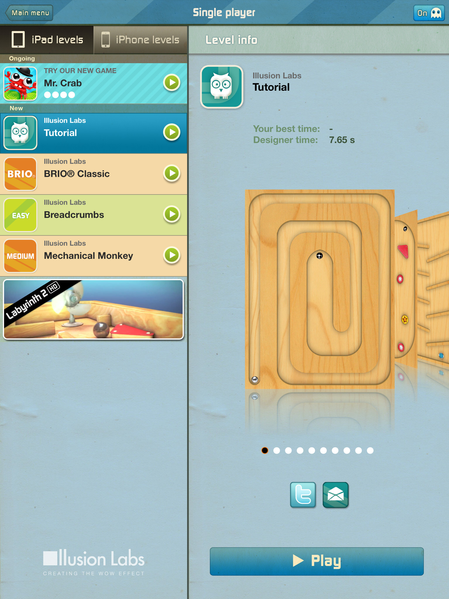 Компания Illusion Labs радует любителей коварных лабиринтов новой версией популярной головоломки с множеством разнообразных уровней.