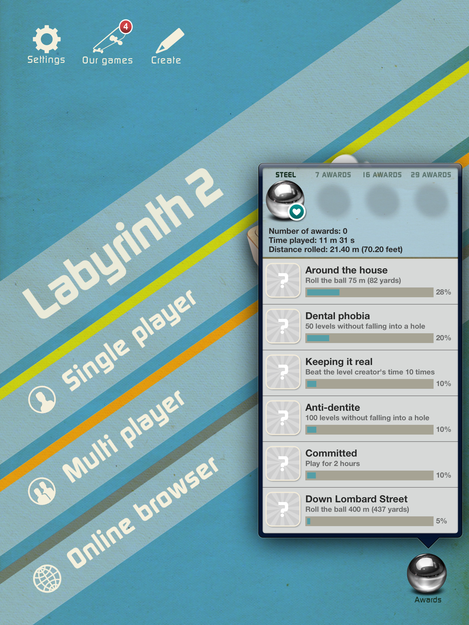 Платная версия приложения дает возможность познакомиться с бесчисленными наборами уровней, созданных поклонниками игры, а также самому заняться строительством, создавая практически непроходимые лабиринты. Помимо одиночного режима, в котором предполагается борьба с лучшим временем создателя уровня (или своим собственным), пользователю доступен режим мультиплеера по Wi-Fi или Bluetooth. Здесь при желании вполне могут сразиться до четырех игроков одновременно.