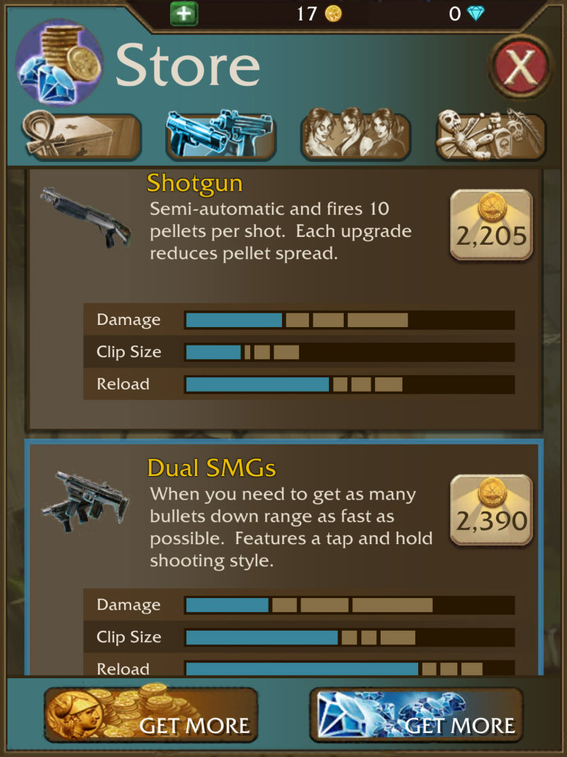 Таким образом, нужно смотреть в оба, чтобы приблизиться к разгадке тайны. Более того, на одном энтузиазме далеко не убежишь – разработчики всячески мотивируют пользователя приобрести алмазы, которые дают возможность продолжить поиски дяди Картера, а без них запас попыток сильно ограничен. Кроме алмазов, Лару можно порадовать различными видами оружия и элементами экипировки, которые помогут ей дольше продержаться в пути. Отметим также красивую реализацию трюков, самые эффектные из которых показываются нам в замедленном режиме.