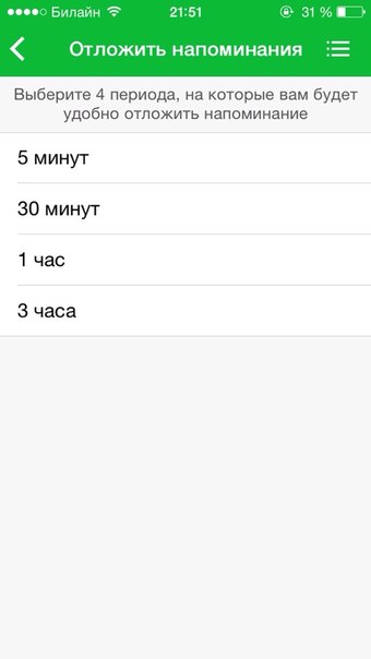 На выбор доступны 13 шрифтов, обычное и жирное начертание, различные размеры, величина отступов, 7 цветов для заливки плашек и ночной режим, что означает черный экран и белый шрифт. Образец написания текста задачи отображается внизу экрана. Можно задать индивидуальные настройки времени. Во-первых, можно установить 4 периода отложенного напоминания: например, каждые 30 минут, каждые 3 часа, каждые 2 дня, 4 недели, год, 51 месяц или просто каждый вечер. При этом есть возможность указать, когда именно для тебя начинается то или иное время суток (утро, день, вечер). Чтобы не потерять все свои списки, можно создать резервную копию, отправить ее по почте и восстановить приложение со всеми задачами и настройками на новом устройстве.