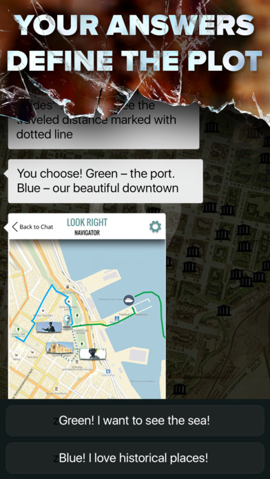 Итак, если вы готовы… Look Right приглашает вас прогуляться по улочкам Одессы в формате чата с настоящим гидом. Вы решаете попробовать, но во время подключения что-то пошло не так и прежде, чем началась экскурсия, вы оказываетесь свидетелем возможной трагедии. Вам предстоит выяснить, как Look Right связан с исчезновениями людей…
