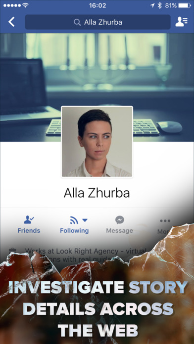 Мы все оставляем след в сети. И все, что происходит в Look Right не исключение. У основных героев есть страницы в социальных сетях (иногда они даже отвечают, если, конечно, не погибли), у каждой компании есть веб-представительства. И страницы не только для проформы. Некоторые из них непросто найти, на каких-то скрыто множество подсказок. раскрывающих детали истории. И даже чат с еще одним персонажем.