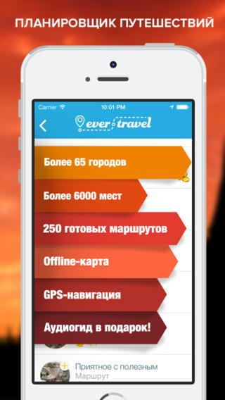 Ever.Travel – простой и удобный планировщик путешествий. Он дает возможность организовать поездку, «распределив» достопримечательности по нескольким дням путешествия и выстраивая маршруты между несколькими городами и странами. В каждом городе можно найти до 150 интересных мест, музеев, кафе, торговых центров, парков отдыха и развлечений — при этом каждый объект сопровождается фото, кратким описанием, меткой на карте и сведениями о часах работы и стоимости билетов. Карта города доступна для загрузки и использования в offline режиме.