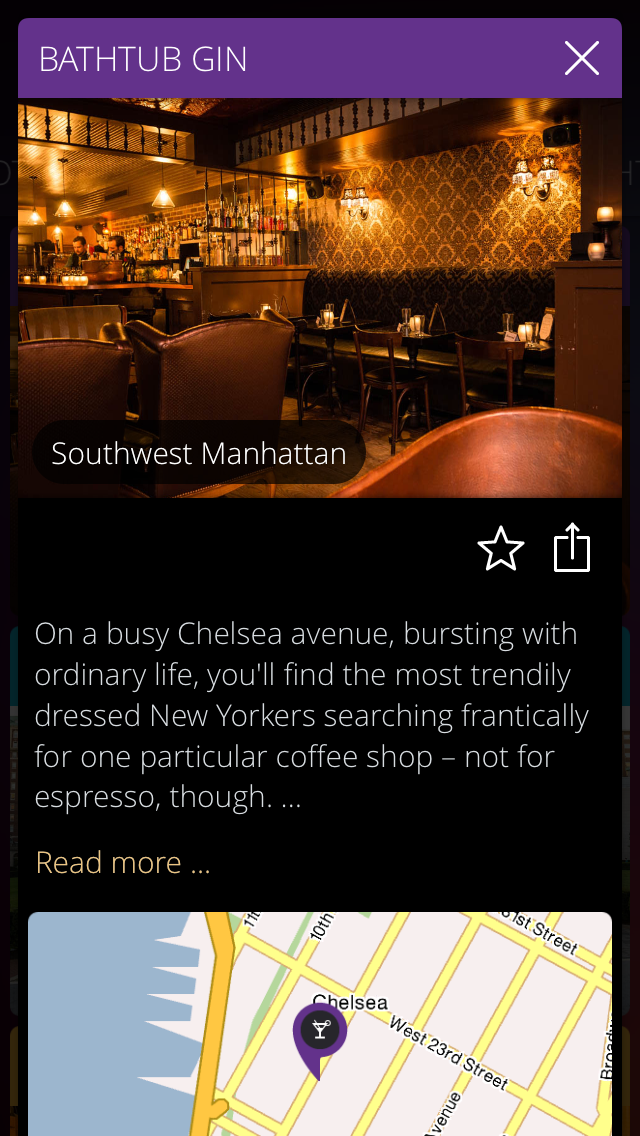 Приложение отличается тем, что вся информация хранится прямо в памяти устройства — это делает их независимыми от интернет-соединения. В основе продукта — идея тематических подборок мест под одно из шести заданных настроений: Модное, Культурное, Семейное, Местное (для тех, кому лень далеко идти), Романтическое и Социальное, или — если нет настроения определяться вообще — «Все настроения». Выбрав понравившееся место, пользователю остаётся только отправиться туда, включив навигатор.