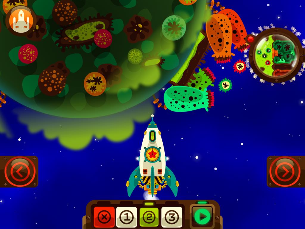 Полёт по космосу закольцован, и, по сути, бесконечен: ребёнок сам может выбирать, на какой планете остановиться и куда лететь дальше.