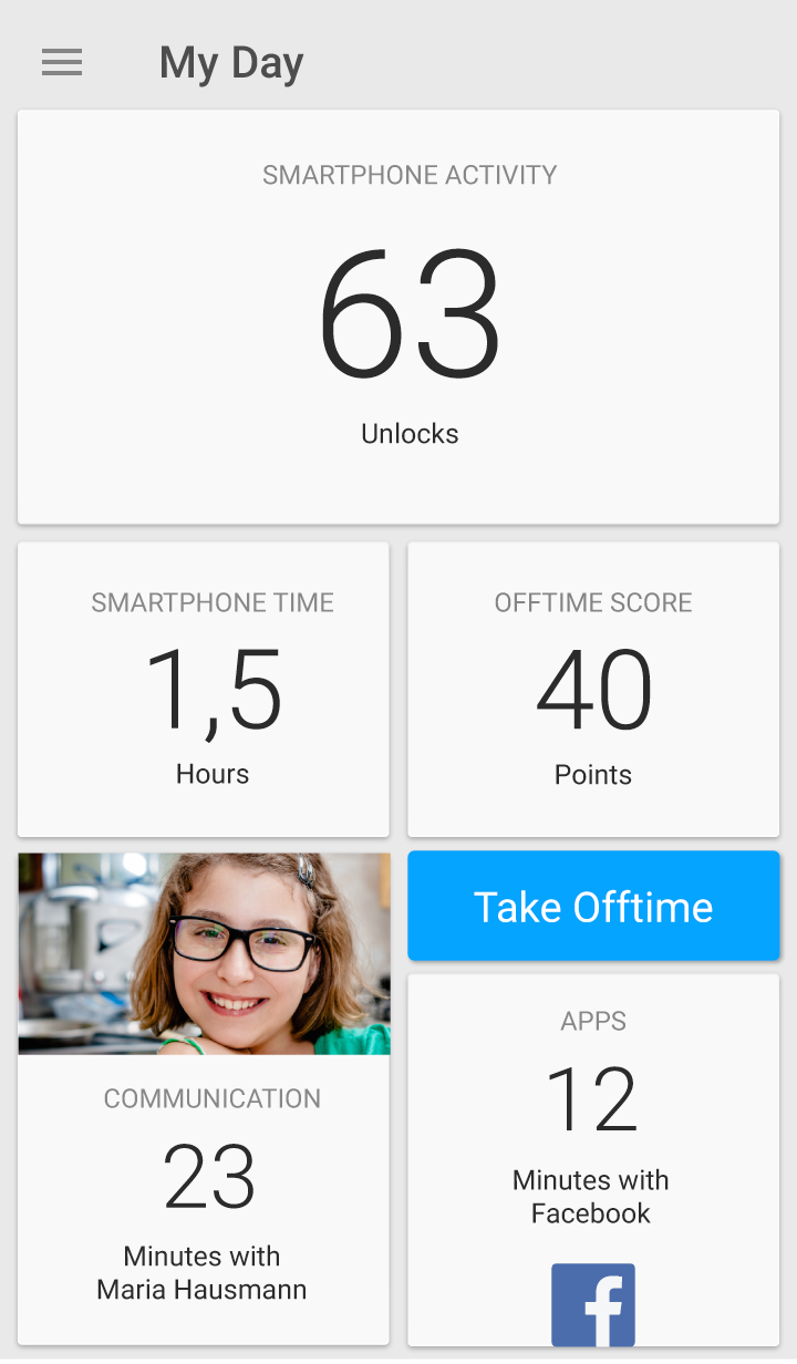 Это забавно, но я не знаю. До OFFTIME у меня было только смутное представление о том, как я использую мобильные устройства. Я не мог представить его в цифрах. Теперь я просматриваю эти данные регулярно. На этапе запуска я проверял телефон 130 раз в день, и я был счастлив, когда у меня получилось уменьшить это число с помощью OFFTIME более, чем в половину — до 50-70. Одной из главных причин использовать OFFTIME стала моя семья. Когда я приходил с работы и забирал своего сына, которому 2,5 года, из детского сада, я часто проверял свой мобильный телефон вместо того, чтобы слушать его. Я отвечал на звонки, а не играл с ним и не учил его ходить. Но на самом деле больше всего я хотел провести время только с ним, не отвлекаясь ни на что другое. Быть там прямо сейчас. Смеяться и играть. В этом плане OFFTIME действительно меняет многое.