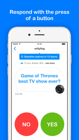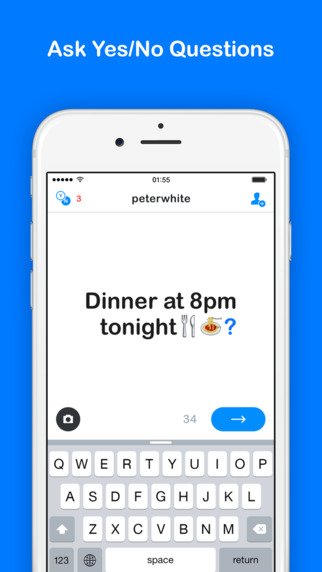 Мессенджер Yes/No для iOS и Android Леонид Боголюбов 10 лет назад Еще один эффективный простой мессенджер – вы задаете вопрос и получаете в ответ только «Да» или «Нет». На каждый ответ есть только 24 часа, «потому что ответы нужны сегодня, а не завтра». The app was not found in the store. :-( Go to store Google websearch The app was not found in the store. :-( Go to store Google websearch