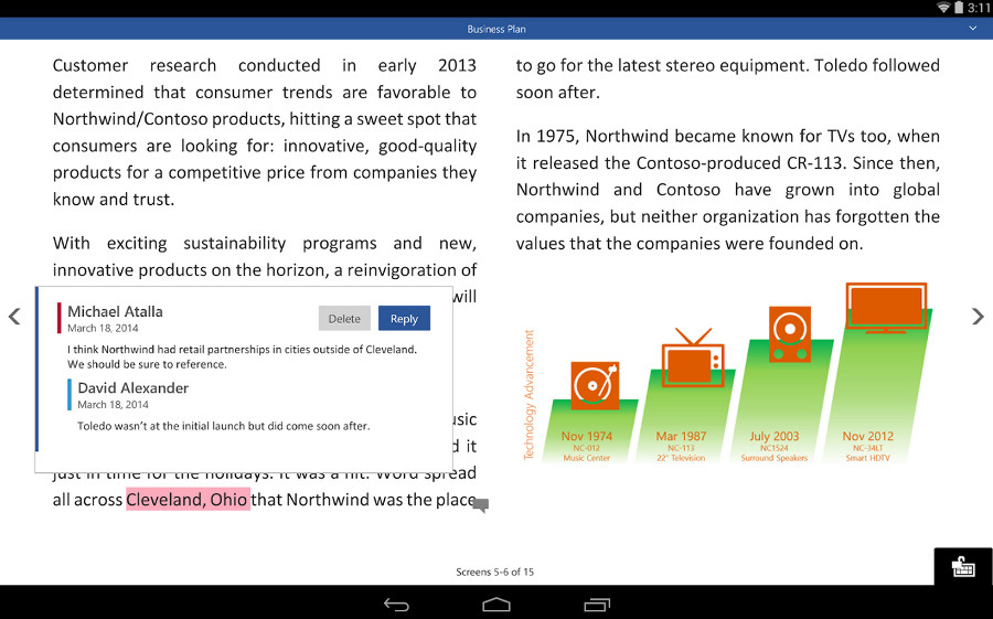 Еще в ноябре Microsoft запустила бета-тестирование Office для планшетов Android и сейчас, спустя два месяца, открыла доступ к приложениям всем желающим.