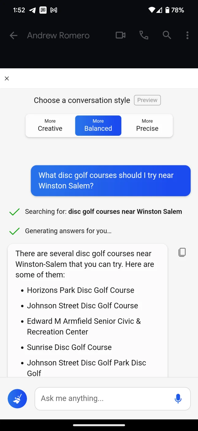 Что касается функции чата, то она реализует общение с проектом ИИ от Microsoft, где он будет принимать ваши подсказки и давать вам ряд уникальных сгенерированных ответов и реакций.