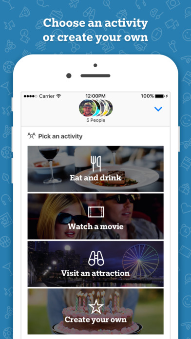 Приложение сделано довольно просто. Вы выбираете вид встречи, который хотите организовать — кино, обед, «посещение атракционов» или другое (можете создать собственное) — ищите место встречи (конечно через Bing) и задаете время. Приложение создает карточку, которую можно отправить друзьям и они смогут прямо в ней проставить свое участие или не участие.