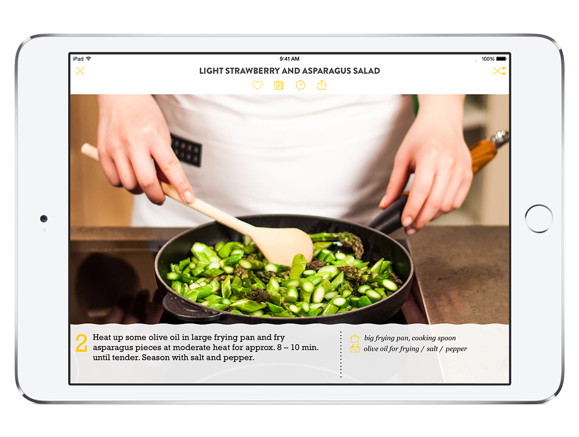 Аналогичное приложение, выбранное App Store как одно из лучших в 2014, — Kitchen Stories от немецкого разработчика. Из интересных плюшек есть видео-инструкции и возможность создавать список покупок. Приложение русифицировано.