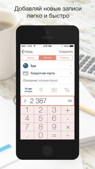 - специальный виджет/настройка для практически моментального внесения транзакций;