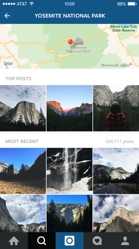 С помощью функции поиска по геотегам Places Search вы всегда будете в курсе того, что происходит в той или иной точке мира прямо сейчас: будь то райский остров, запланированный к посещению в следующий отпуск, любимый музыкальный фестиваль или новый ресторан поблизости.
