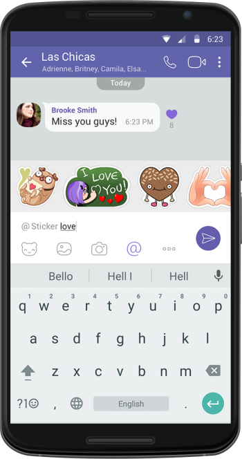 Теперь пользователи могут использовать сторонние сервисы прямо в чате. Представленная версия Viber поддерживает Giphy, Wikipedia и TheMovieDB, а в дальнейшем этот перечень будет непрерывно расширяться. Доступ к сервисам прост — пользователь должен нажать на значок «@» и выбрать название сервиса из списка. В дополнение, этим же способом пользователи Viber теперь могут производить поиск по коллекции забавных стикеров. То есть, набрав «@stickers» на английском языке или кликнув символ «@» пользователь получает доступ к быстрому поиску по своим любимым стикерам.