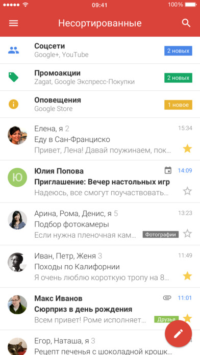 На iOS обновился клиент Gmail и теперь он догнал по функциям и дизайну версию для Android.