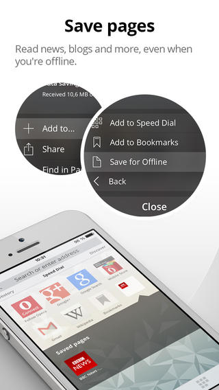 Пользователь может устанавливать различные режимы при необходимости, отключая сжатие данных при нахождении в высокоскоростной сети Wi-Fi в офисе, активируя Opera Turbo при использовании своего стандартного тарифного плана или же выбирая Opera Mini во время путешествий за границу. Все три опции – в одном браузере на iOS-устройстве пользователя. Уже долгое время Opera Mini остается абсолютно необходимым решением для людей, которые постоянно находятся в движении и активно путешествуют по стране и за ее пределами. С новой Opera Mini 8 такие пользователи получают в свое распоряжение поистине универсальный браузер.